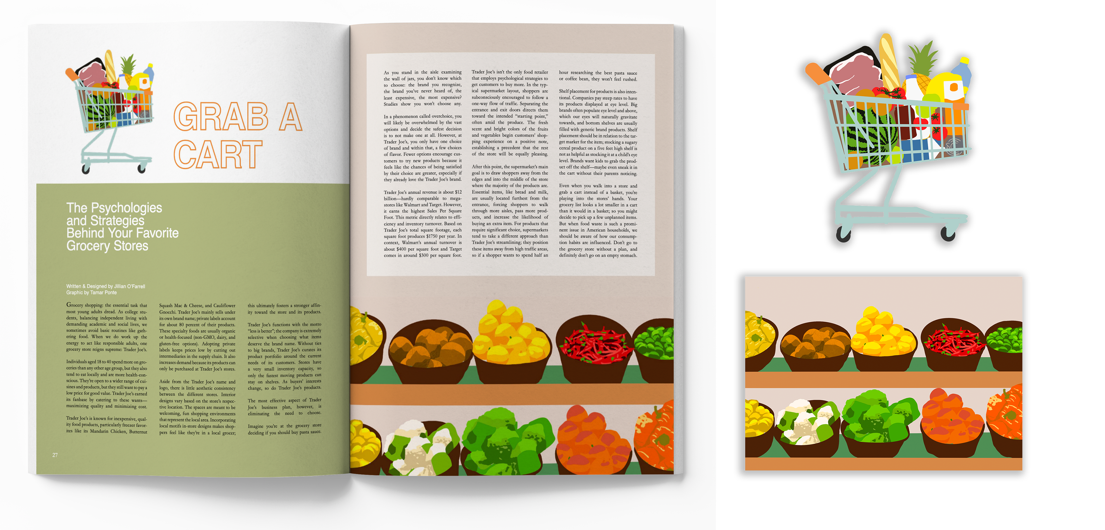 From my laptop to your hands, meet my baby: The Buzz. As The Creative Director, I owned the "master document" (basically, a huge indesign file that crashed my computer daily). I designed, edited, and created graphics with a team to produce two print magazines a year and art for daily online articles.